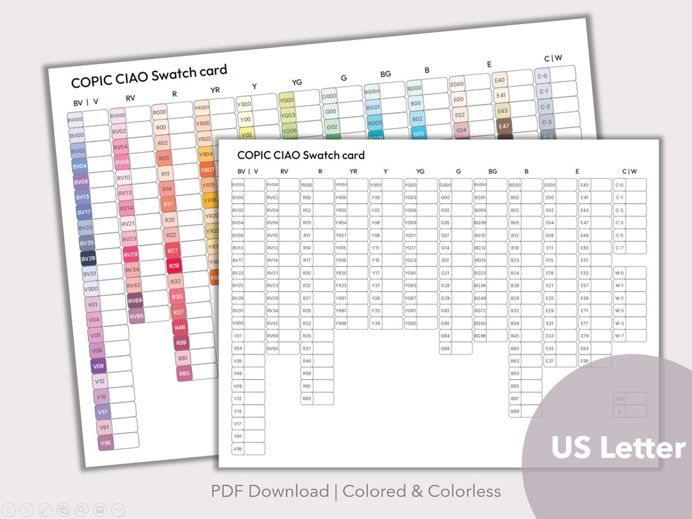 -coloredless Copic Ciao swatch card in US letter Format